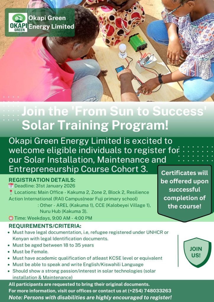 Community Centre for Excellence, in partnership with Okapi Green, is proud to offer a Solar Installation Course aimed at empowering women. This program provides practical skills in solar energy installation, maintenance, and sustainable energy solutions, enabling women to access new career opportunities and become leaders in the renewable energy sector.